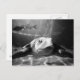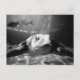 Closeup black and white photo of swimming sea turtle