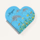 A colourful and cute pen and ink illustration of a group of friendly sea turtles with blue bubbles adorns this fun and functional heart shaped spiral notebook. Personalise it with your name or title!