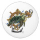 A green sea turtle swimming by a ship wheel, rope and an anchor. Tattoo style art.