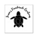 Customisable "made by" self inking rubber stamp features sea turtle silhouette and modern curved script text. Perfect for small handmade craft businesses