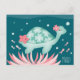 "Sea Turtle Maui" Postcard with a illustration of a sea turtle and a starfish surrounded by bubbles, fishes and hibiscus flowers. Just floating in the ocean of Maui, Hawaii.