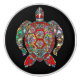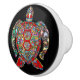 Mosaic sea turtle in jewel tone colours of red, green, blue and gold on a black drawer pull.