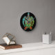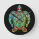 Mosaic sea turtle in jewel tone colours of turquoise, red, green, blue and gold on a black clock.