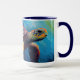 Watercolor sea turtle swimming through the ocean, original artwork by Nicole.