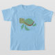 An adorable sea turtle playfully splashes around in the water on an adorable T-shirt kids who like marine life and undersea adventures are sure to love!