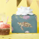 A watercolor painted wrapping paper featuring sea turtles with purple coral and seaweed against a deep green sea ombre background.