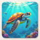 Sea Turtle Vibrant Ocean Illustration Square Paper Coaster