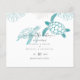 Bold teal, turquoise and blue Sea Turtles and tropical leaves feature on this modern ocean life sea themed wedding invitation or save the date item. Text template fields both sides ensure you can add all your additional details, including rsvp, gift registry, reception details, directions and more.