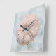 Sea Urchin Distressed Coastal Blue Cream Painting Square Wall Clock