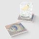 The coasters are gorgeous, a quality feel and heavy weight. They look like a precious archeological find. A rustic stone juxtaposed with a modern floral black and white print. I like the way the print goes slightly imperfect on the cut stone edges giving them a kind-of natural beauty.