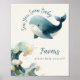Sea You Soon Whale Ivory Baby Shower Favors Sign. Available digitally and printed. Easily personalise the text to your details. With a watercolor illustration of a whale and wave.