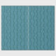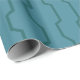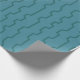 This wrapping paper has a geometric design of dark seafoam blue vertical lines with trapezoidal bumps in them on a field of lighter seafoam blue.