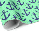 Seafoam Green and Navy Blue Anchors Pattern Wrapping Paper