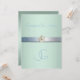Elegant, Seafoam Green with silvery blue ribbon, beautiful white flower and stars. Customise to suit your occasion. Save the date, wedding, engagement.