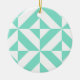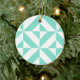Seafoam Green Geometric Deco Cube Pattern Ceramic Ornament