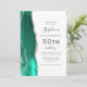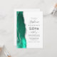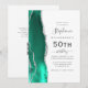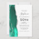 The left-hand edge of this elegant modern 50th birthday party invitation features a seafoam green watercolor agate border trimmed with silver faux glitter. The customisable text combines charcoal grey handwriting, copperplate and italic fonts on a white background. Add RSVP instructions on the back of the card, along with a QR code guests can scan to respond online.