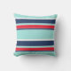 Seafoam Green White Dark Blue Red Stripes Pattern Cushion