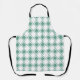 This apron has a mid-century modern design of solid seafoam diamonds inside seafoam diamond outlines on a field of white.