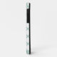 This phone case has a mid-century modern design of solid seafoam diamonds inside seafoam diamond outlines on a field of white.