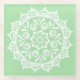 This white mandala sits on a soft green background. The colours are serene and creative. Part of the Brosya Mandala Collection.