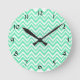 Seafoam Mint Green Zigzgag Pattern Round Clock