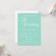 Simple style, wedding invitation that features a trendy, seafoam colour background along with the future bride and groom names and event date, time, location, and registry printed in white, stylised script. Personalise your wedding invitation by replacing info with your own. Select your invitation paper style and quantity. Designed to coordinate with our Seafoam Simple Style Wedding collection.