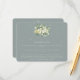 A blue-green flat wedding reception enclosure card for wedding receptions that are held at a different venue than the wedding ceremony. The card features an elegant bouquet/posy of hand painted snowberries and eucalyptus on the front and a wreath on the back of the card. All text is fully editable and the scattered dots on the front and back can be deleted before ordering if you would prefer. This card is available with alternative botanical designs, in a portrait format, and in different colours. Please view the Collection in my store to see all options and coordinating items.