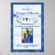 Here's a cute seafood / crab theme party poster you can use for your special crab boil, lobster fest or other special event. Blue and white colour theme with cute bunting flags with polka dot, chequerboard, gingham, anchors and hearts. Two crabs are pinching the flags. Bottom has a place to add your own photo of the special couple. This would be cute to add an inexpensive frame and have at the front door of the event. Wording is for Rehearsal Dinner but could easily be changed for any occasion. Background has crazy crabs and seagulls in a pattern on a sea blue colour.