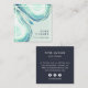 Elegant watercolor business cards feature geode or agate slice illustrations in pale seaglass green tones. Cards reverse to solid dark navy blue with white lettering. Includes three social media icons and a field for your username.