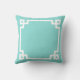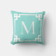 Seaglass Teal and White Monogram Greek Key Border Cushion