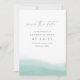 Elegant coastal wedding save the date features a sheer seafoam green watercolor gradient along the bottom with a graceful curve that evokes the ebb and flow of the sea. Your wedding details appear in minimalist classic lettering with handwritten script accents. Use the back for sharing additional information with your guests.