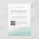Designed to coordinate with our Seaglass Tides wedding collection, this coastal chic guest information card features a sheer watercolor wash of seafoam green along the bottom, anchoring your key wedding details, like hotel accommodations, welcome reception information, and website. Includes a customisable QR code to make it easy for guests to scan for more details or to RSVP.