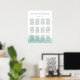 Wedding guest seating chart matches our Seaglass Tides collection, featuring a sheer watercolor wash of seafoam green along the bottom, with navy and grey lettering.
