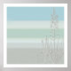Soft muted colors of sky blue, taupe and seafoam green with tall elegant organic grass in the foreground. Contemporary print for your living room, bedroom or bath.