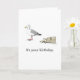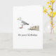 funny and quirky birthday card featuring a seagull and a bag of french fries on the front, and a seagull with its head in a bag of french fries on the inside. It's your birthday. Go for it.