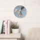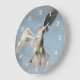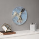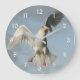 Stylish wall clock with white numerals that features a photo image of a grey and white Glaucous-winged Seagull in flight. Use to decorate a kitchen, living room, dining room, or any other room. Select your clock style and size along with hand colour.