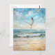 This watercolor postcard features a graceful seagull soaring above gentle waves with a soft blue sky and golden sandy beach below. Perfect for beach lovers, coastal travelers, or anyone who finds peace in ocean views, this postcard brings the freedom and serenity of the sea to your mailbox. Ideal for vacation greetings, summer notes, or framed as nautical wall art.