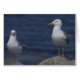 A photographic image of 2 white and grey / grey Seagulls standing on the rocks near the Atlantic Ocean in Nova Scotia, Canada.