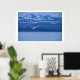 In this animal art poster the photographer captures a clear image of a seagull taking flight over the ocean from the coast in Northern Norway. The wildlife photograph is shot during dark season - providing a dramatic combination of blue and white tones. In the horizon is the overcast sky, filled with snow clouds hovering above the snowy mountain peaks. This is a peaceful and serene wildlife poster truly expresses a sense of freedom. You don’t need to be a bird lover to see beauty in this print – it is equally admired by those who love landscape and nature.