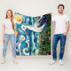 Seagull Van Gogh Style Beach Sky Blue Teal Fleece Blanket