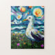 Seagull Van Gogh Style Beach Sky Blue Teal Jigsaw Puzzle