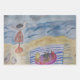 The hungry seagull eyes the picnic laid out on a blue striped beach towel. Will it be able to steal a piece of the fruit before the picnickers return? Vivid pastel colors make this a striking beach gulls design. The blue of the sea and sky contrast with the warm gold of the sand to evoke the salty air and hot sun of a summer afternoon spent at the seaside.