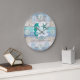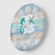 Seahorse and Beach Wood Nautical - Blue Teal Large Large Clock