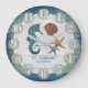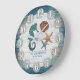 Seahorse and Beach Wood Nautical - Dark Blue Teal Large Clock