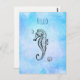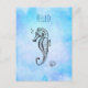 Seahorse and Seashell on Blue Watercolor Hello Postcard