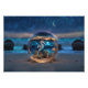 A surreal image of a seahorse and star fish in their underwater environment, in an orb on a beautiful coastline with the stars and crescent moon. A fantasy image great for the beach house, bathroom decor or any nautical fantasy spot.