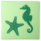 Seahorse and starfish - lime and emerald green tile