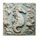 "classy classic art nouveau", "underwater seahorse creature", "ocean sea marine animals", "faux relief ceramic tile", "mint blue white water", "pastel turquoise teal", "vintage stylish shore life", "floral nautical animal", "beautiful light sage green", "elegant beach coast antique"