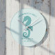 A teal seahorse family beach house wall clock waiting for you to add your family name and year established. If you love the coastal vibe, then this is the clock just for you