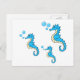 Created by Rebekkah Fukumoto, this design features a family of three playful blue sea horses blowing bubbles together. An adorable postcard that will put a smile on your face!